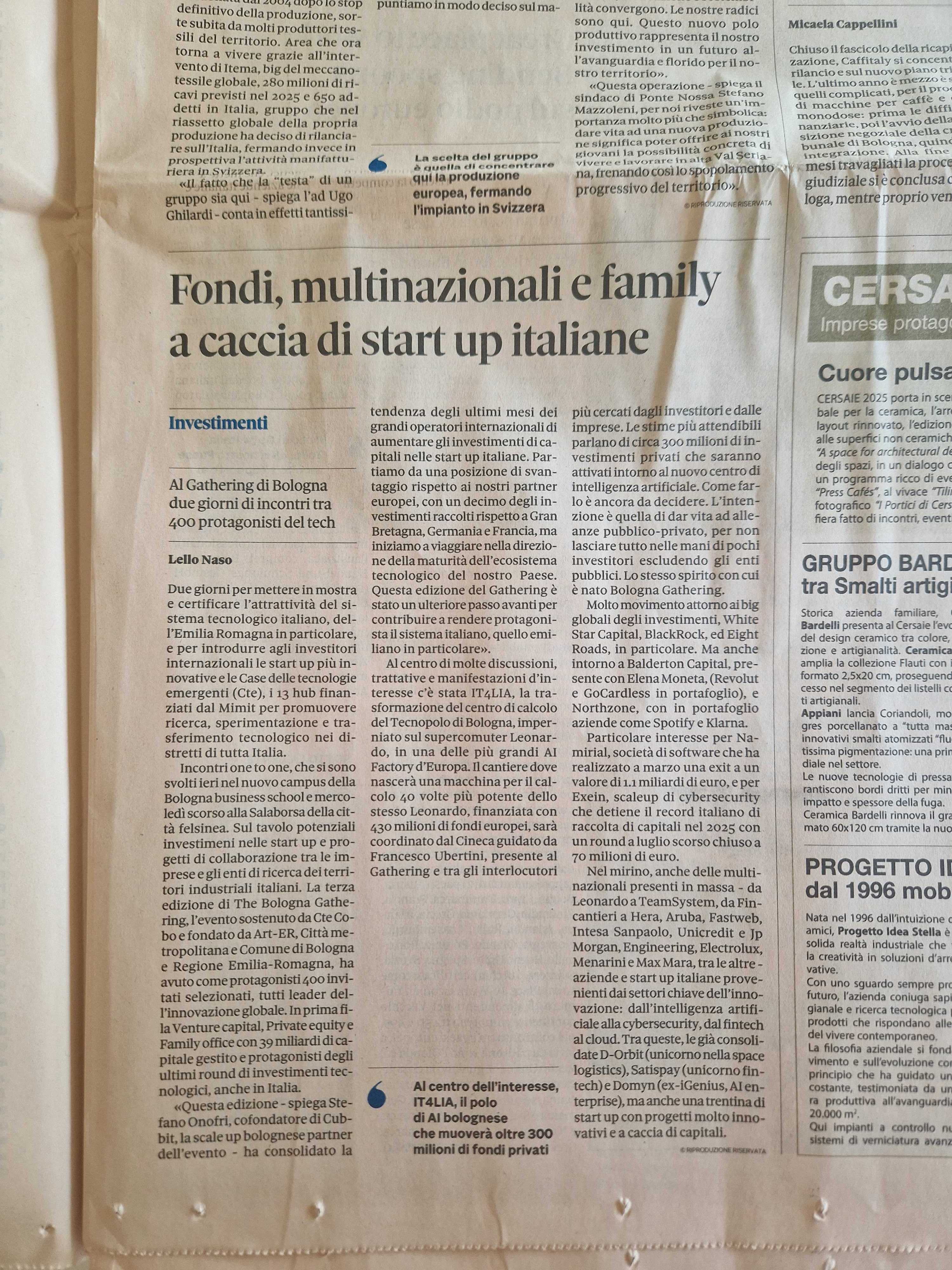 [IlSole24Ore, L. Naso] Fondi, multinazionali e family a caccia di startup italiane